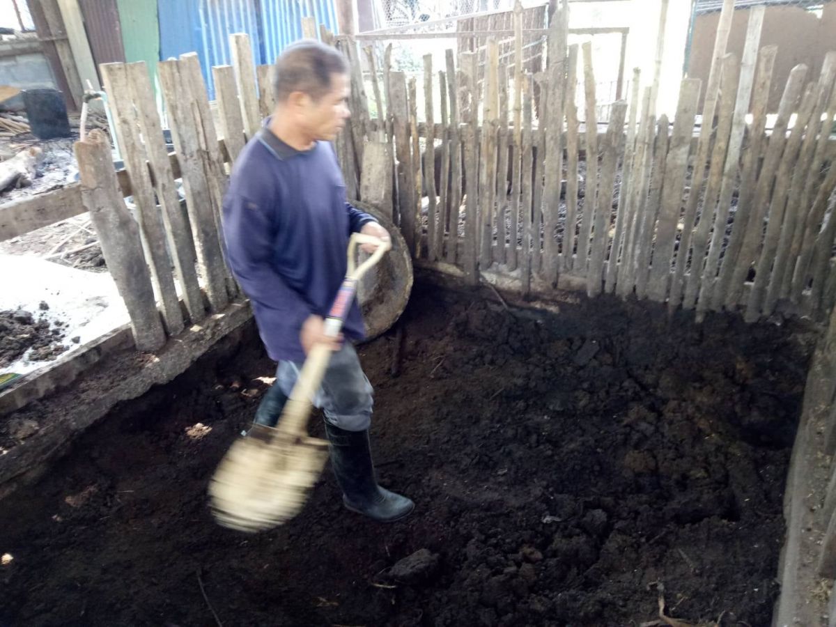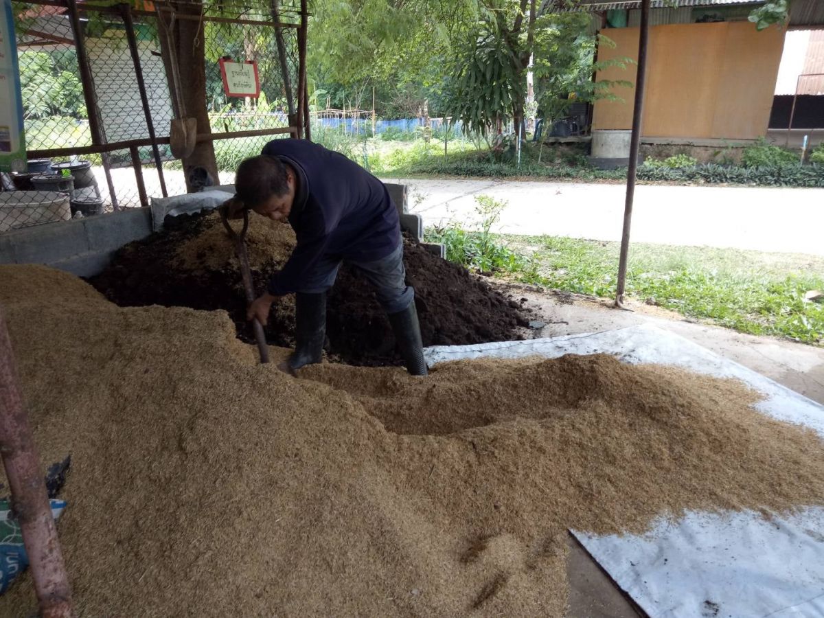 #พัฒนาฐานเรียนรู้การทำปุ๋ยหมัก โดยการทำความสะอาดบริเวณรอบๆ และผลิตปุ๋ยหมักจากมูลสุกรผสมใบก้ามปูแห้งและแกลบ