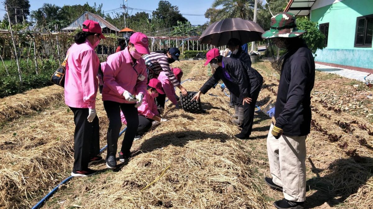 คณะ อพม.ชุมชนเมืองมุกดาหาร ลงพื้นที่ร่วมกิจกรรมปลูกผักสวนครัวโดยวิธีเกษตรธรรมชาติ