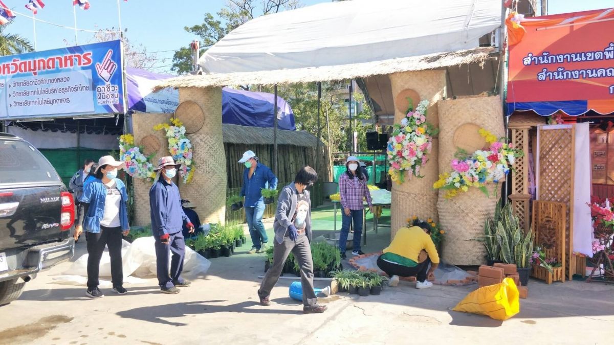 จัดตกแต่งบริเวณเพื่อจัดนิทรรศการและออกร้านในงานกาชาดและงานของดีจังหวัดมุกดาหาร ประจำปี 2565