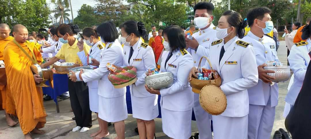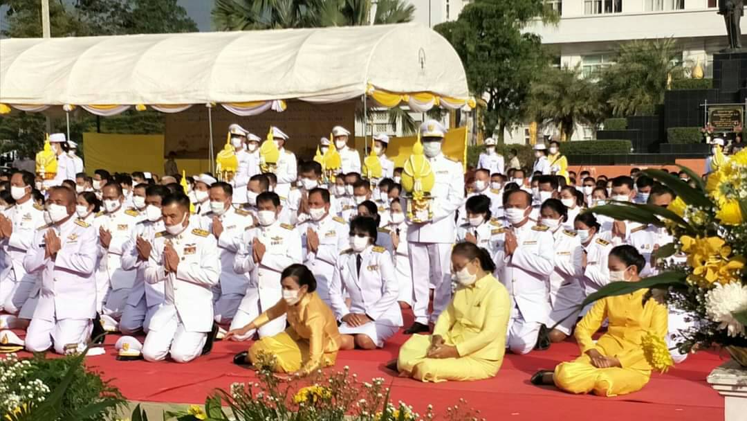 \"ร่วมพิธีทำบุญตักบาตรและพิธีวางพานพุ่มและถวายบังคมฯ\" 5 ธันาวาคม 2563
